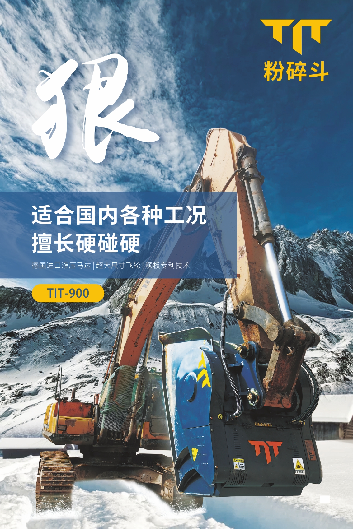 TIT,源自Titan的縮寫,原指古希臘神話中力大無窮的威猛之神,借意本產(chǎn)品剛勁有力,產(chǎn)能高效。TIT粉碎斗,也稱破碎斗,顎式破碎斗,是一款創(chuàng)新型挖掘機(jī)屬具,掛于挖掘機(jī)大臂上,可快速將工程惰性材料破碎成極具價(jià)值的工程用料。隨著國(guó)內(nèi)基建行業(yè)展,基于市場(chǎng)對(duì)經(jīng)濟(jì)化、效率化、環(huán)?;牧系拇罅啃枨?,破碎斗將廣泛應(yīng)用于多種物料破碎場(chǎng)景。 |